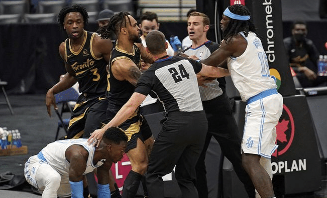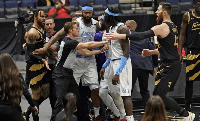 来源:24直播网04-09 11:3824直播网4月9日讯 前段时间湖人击败猛龙的比赛中,阿奴诺比抱摔施罗德引发了两队的冲突,当时赛场上的判罚是阿奴诺比和推搡的哈雷尔被直接驱逐,而现在联盟的追加处罚来了,Shams报道,阿奴诺比被罚款3万美元,哈雷尔被罚款2万美元,同时双方的球员也因为在冲突期间离开板凳席而被禁赛一场,包括范弗利特、本布里和霍顿-塔克,他们都将无缘球队的下场比赛。