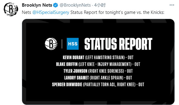 来源:24直播网04-06 11:3624直播网讯 纽约同城德比来了,赛前篮网主教练纳什更新队内伤情,哈登伤愈复出,杜兰特进入每日观察名单,不过篮网悍将泰勒-约翰逊因右膝伤势预计伤停2-3周。