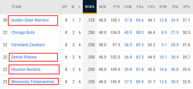 其一,勇士的篮板球太差,这8场比赛,他们场均只抢到40.4个篮板,排名同期联盟倒数第一。