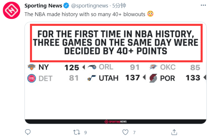 据统计,这是NBA历史上首次出现单日至少3支球队惨败40+!不得不说,这几天的惨案实在有点太多了!强队变得更强,弱队变得更弱了!