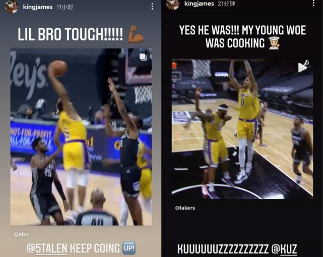他转发霍顿-塔克的隔扣,配文写道:“小兄弟够强硬!继续努力!”转发库兹马扣篮的画面时,也不忘拖着长音来一个“KUUUUUUUUZZZZZZZ!”