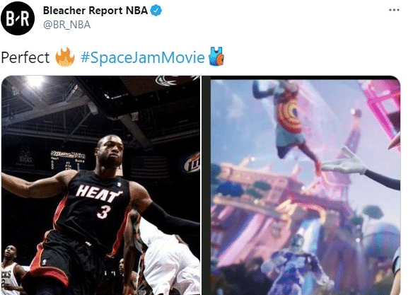 同时预告片中还有经典的詹韦连线,这也是对于詹韦经典连线的致敬,詹姆斯此前在热火拿到总冠军,他好搭档韦德就多次给他喂饼,其中一次韦德助飞詹姆斯,他传球之后直接庆祝,这一幕堪称NBA历史上的经典。