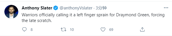 来源:24直播网04-03 18:0424直播网4月3日讯 库里因尾椎骨酸痛缺席勇士和猛龙的比赛,当家星球伤停还有还坏消息,据勇士跟队记者Anthony Slater报道,勇士官方宣布追梦格林因左手手指扭伤缺席比赛,因伤临时退赛,勇士又遭重创,伤病不断太倒霉了。