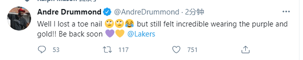 来源:24直播网04-02 19:2224直播网讯 湖人新援庄神首秀仅打14分钟便受伤离场,湖人记者报道庄神最多伤停1-2场;对于自己的伤情,庄神本人更新社媒媒体,发推写道:好吧,虽然我失去了一个脚指甲(3个哭泣表情),但我依旧对穿着紫金战袍感到不可思议,我很快就会重返赛场。