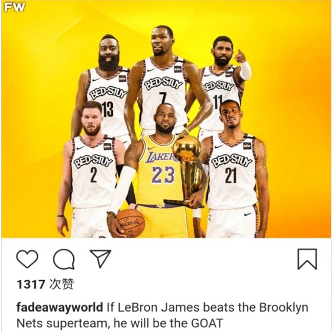 在今天篮网大胜黄蜂稳居东部第一之后,网络上有一种声音传来,称如果詹姆斯可以带队击败这支超级篮网,那么他将会成为GOAT,历史最伟大球员。这一观点瞬间获得了不少球迷们的点赞支持和认可。