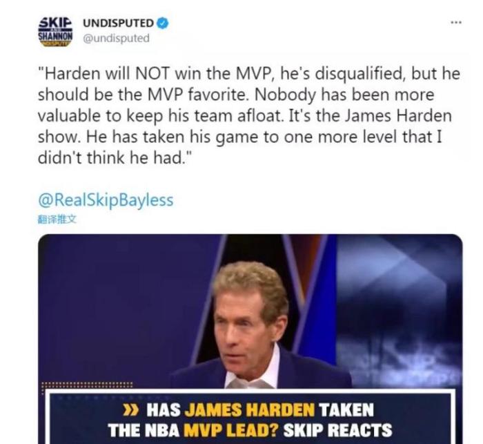 其次是另一名名嘴贝勒斯的观点,贝勒斯认为当哈登从火箭队离开的时候,他就不会应赢得MVP,因为他已经被取消了资格了。为什么这样说?贝勒斯表示,在过去的74年里面,从来没有一个赛季中途换队的球员可以获得常规赛MVP,这一历史的定律也将成为魔咒,这也是贝勒斯认为哈登资格被取消的原因。