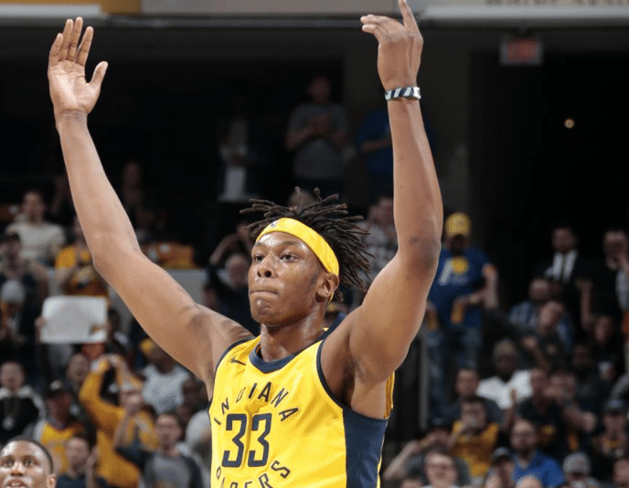 迈尔斯特纳身高2.11m,体重111kg,臂展也达到了惊人的2.24m。他在场上主打4、5号位。特纳手感柔和,有一手稳定的中距离。最令人惊叹的是特纳的护框能力。他在内线总能瞅准时机,利用速度和弹跳送给对手排球大帽。特纳最大的缺点是他没有三分。如果在未来特纳在开发出三分,他将在赛场上变得更具有统治力!但相比于萨博尼斯的全面,特纳的还是显得粗糙了许多。这也是为什么步行者一直主打萨博尼斯的主要原因!