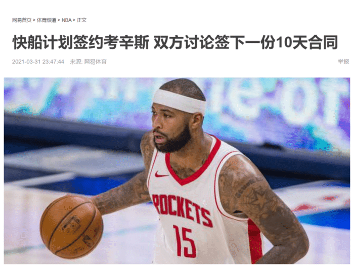 另外据沃神报道,洛杉矶快船对于考辛斯的状态也不是十分有信心,两者很可能是签约一份10天的短合同,所谓“先尝后买”。