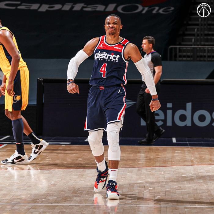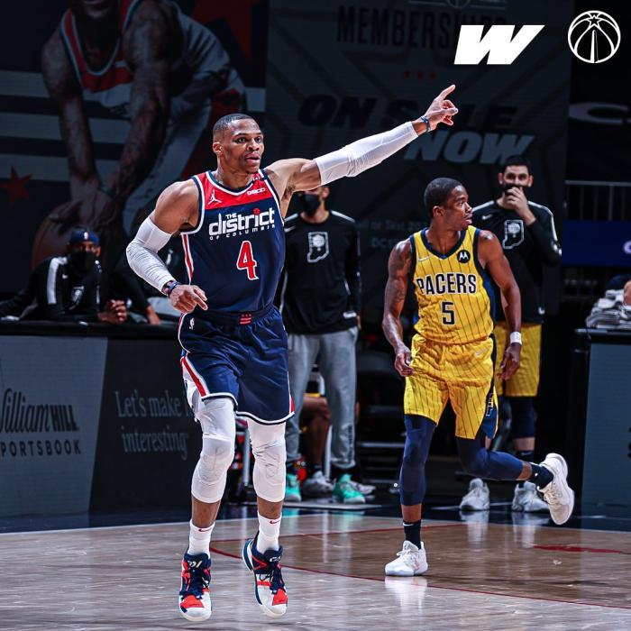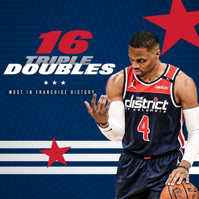 最后再次恭喜韦少证明自己,现役三双王绝非浪得虚名,加盟奇才后场均轰下21.8分10.1篮板10.5助攻,又是场均三双的节奏,他曾连续三年场均三双创纪录,未来超越大O成历史三双王应该是没问题的。