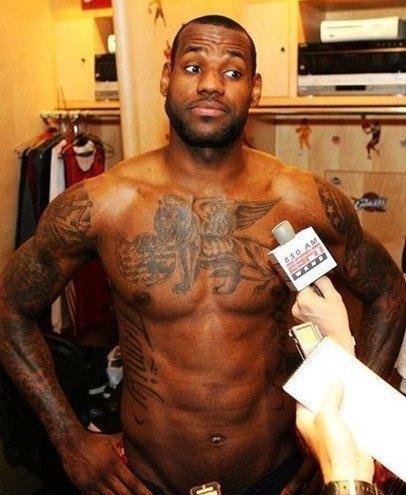 和自己的客户打成一片,GANGA不愧是公认的最受NBA球员喜欢的纹身师,不过这个作品虽然体现出了他和詹姆斯的亲密关系,可是詹姆斯纹的王冠实在让人不敢恭维。