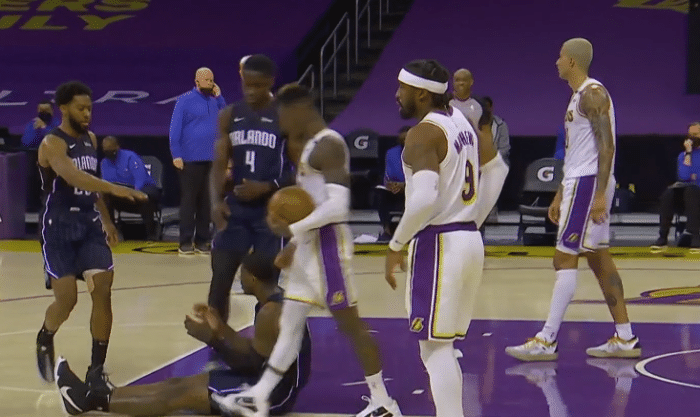 末节比赛开始后两队进入拉锯战,比分交替领先,库兹马三分球命中,湖人取得了5分的领先优势,最后时刻施罗德连造犯规6罚全中,30秒卡特暴扣得手,湖人领先3分,波特三分压哨不进,最终全场比赛结束,湖人96:93险胜魔术。本场比赛时刻施罗德24分,小加索尔7中2,波普4中1,马修斯5中1。