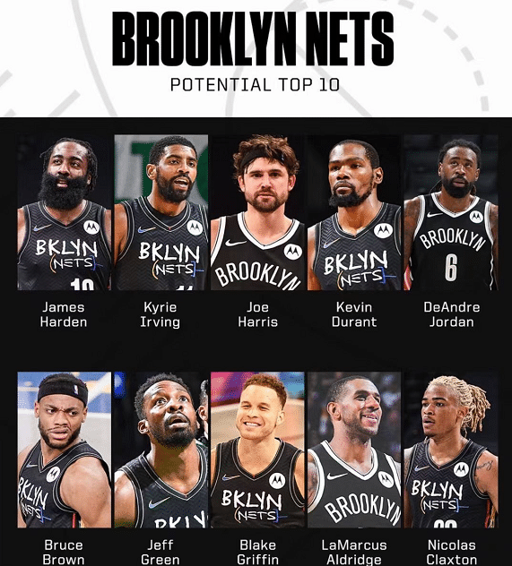 阿德来到篮网,肯定会被提到首发位置上去的, 这样杜兰特、哈登、阿德、格里芬和欧文,这5人都有三分球投射能力,也有肆虐篮筐的实力,确实很给力。同时他们的选秀顺位加起来居然不超过10!杜兰特是第2、哈登是第3、阿德是第2、格里芬是第1、欧文是第1,所以起来的数字仅仅是9,这样的首发五人选秀顺位如此高的,历史罕见。