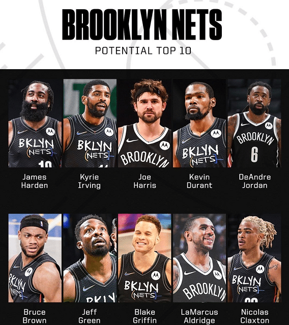 阿德加盟到篮网之后,篮网组成了七星战队:哈登、杜兰特、欧文、小乔丹、格里芬、阿德和乔-哈里斯,其中前六人都入选过全明星阵容,乔-哈里斯本赛季也拥有全明星一般的数据,而且他也在全明星拿下过三分王的荣誉,整体表现说是巨星也丝毫不为过。