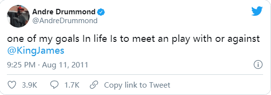 庄神去哪儿成为外界关注的焦点,不久前美媒挖出德拉蒙德10年前言论,与詹姆斯有关——2011年8月份,德拉蒙德发推:我人生的一大目标是就是联手或者对抗詹姆斯。