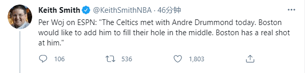 德拉蒙德已经飞抵波士顿,并且已经和凯尔特人会面,双方商讨合作事宜,绿军特别希望引援他填补中锋的空缺,他们的优势是能给庄神更多的上场时间。
