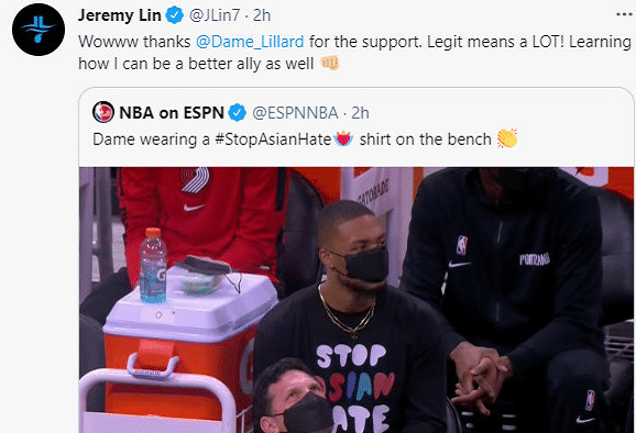 利拉德为亚裔发声!林书豪发文感谢,詹姆斯韦德等也曾公开声援