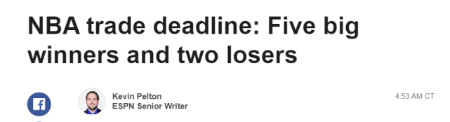 热火也是赢家,他们只是损失了一个轮换球员(奥利尼克)和一个首轮互换权,就补充了奥拉迪波、别利察和阿里扎。虽然他们看上去还不是总冠军的有力竞争者,但至少他们的实力变强了。