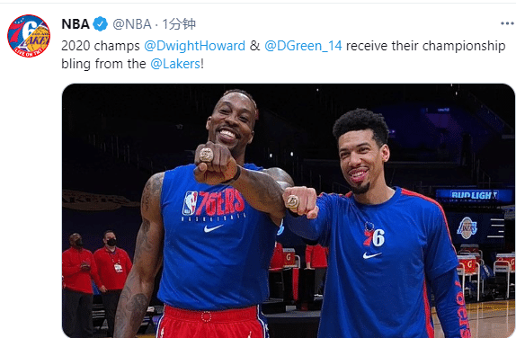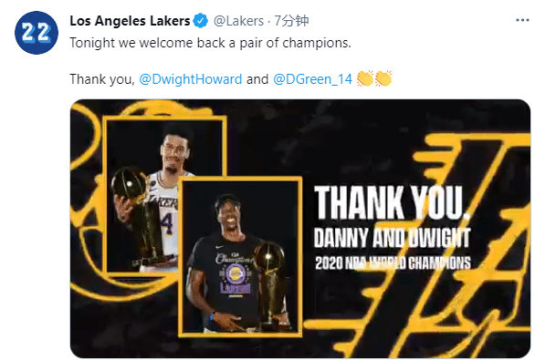 湖人官方连续更新动态,欢迎两大夺冠功臣回家,NBA官方也晒出魔兽和格林领取金光闪闪的总冠军戒指;最后再次恭喜他俩领到冠军戒指,不过说实在的,湖人没有选择续签霍华德太遗憾,毕竟年薪只有256万美元;交易截止日已经结束,接下来就看湖人如何捡漏吧!