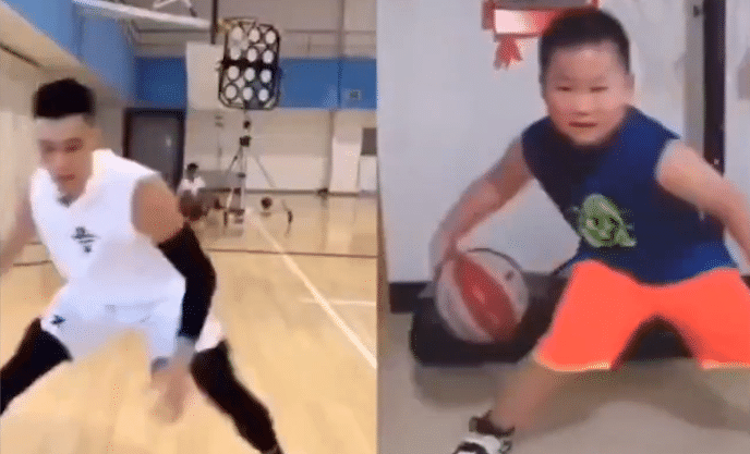 火了!7岁男孩苦练胯下运球,与林书豪合拍短视频,偶像詹姆斯