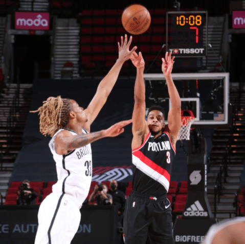 下半场比赛开始,哈登依旧率领着球队紧咬比分,虽然多次被拉开,但是稍稍领先的开拓者一旦松懈就会被篮网打出一波高潮,双方在第三节打得非常胶着,哈登单节个人得到10分,克拉克斯顿在本节多次和哈登连线,单节拿下6分,琼斯在本节多次扣篮得手,但是在三分线外却无法命中投篮,个人单节贡献9分,双方在第三节比赛战成25-27