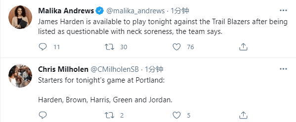 来源:24直播网03-24 11:3024直播网3月24日讯 篮网和开拓者大战赛前,球队官方宣布哈登继续出战,此前哈登因颈部酸痛被列为出战成疑(50%上场可能性),如今31岁哈登拒绝轮休,带伤对阵开拓者双枪,这一次哈登又是单核带队,欧文因个人原因暂时离队,杜兰特也没有随队出征三连客。