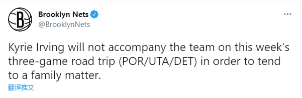 欧文因处理家庭事务,不会随队出征三连客,目前没人知道欧文请假离队,具体处理什么事情;球迷调侃该不会要办自己的生日派对吧,巧了,马上就是欧文的29岁生日;此前欧文擅自离队,给家人过生日,因违反防疫协议被罚5万美元。