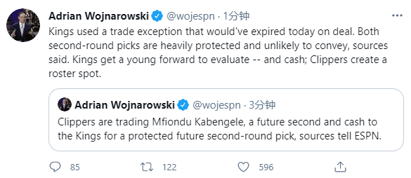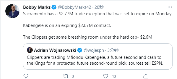 来源:24直播网03-23 10:2924直播网3月23日讯 随着交易截止日临近,快船已经行动了,和国王达成3换1交易,快船将卡本盖莱+二轮签+部分现金送到国王,换取一个受保护二轮签;随后名记补充报道,国王使用了一个本应在今日到期的交易特例,这两个次轮签都受到严格保护,不太可能转手。