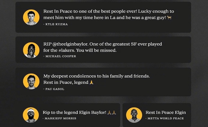 很快湖人上下发文悼念埃尔金-贝勒:
