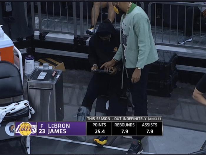 36岁詹姆斯右脚扭伤,仍旧随队飞到菲尼克斯,身穿一身黑衣坐在角落里,伤后首次现身十分低调;詹姆斯亲眼见证保罗的里程碑时刻,不过缺少詹姆斯和浓眉的湖人,进攻火力明显不足,不得不说湖人大麻烦真来了,但愿詹姆斯和浓眉早日痊愈。