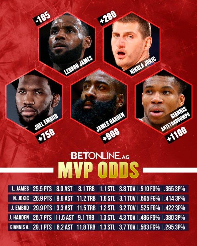最新MVP赔率出炉!詹姆斯受伤跌至第二,约基奇升至第一哈登第五