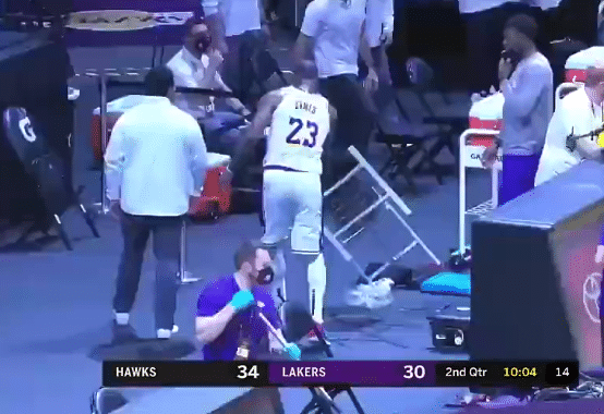 太沮丧!詹姆斯打翻场边凳子,湖人官宣引热议,老詹真铁人