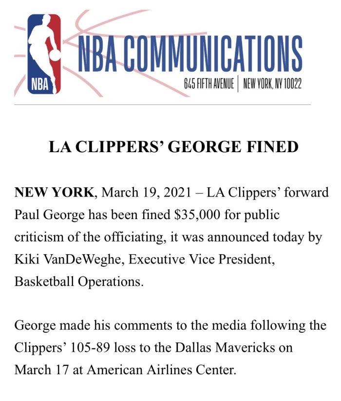 官宣!乔治被罚款3.5万,多次喷裁判+讽刺哈登假摔,快船引援锁定球哥!