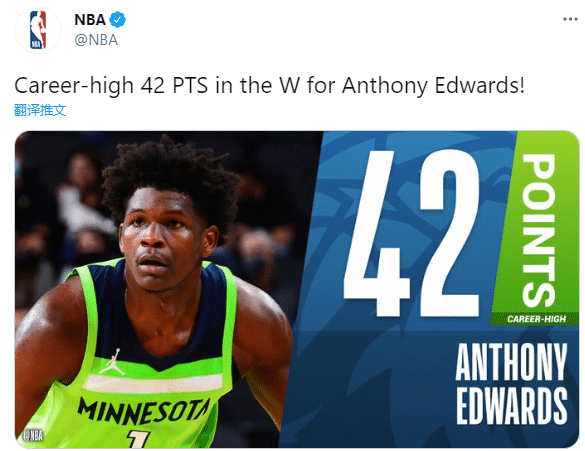 第一、爱德华兹单场42分创生涯新高,也是所有新秀中得分最高的球员。