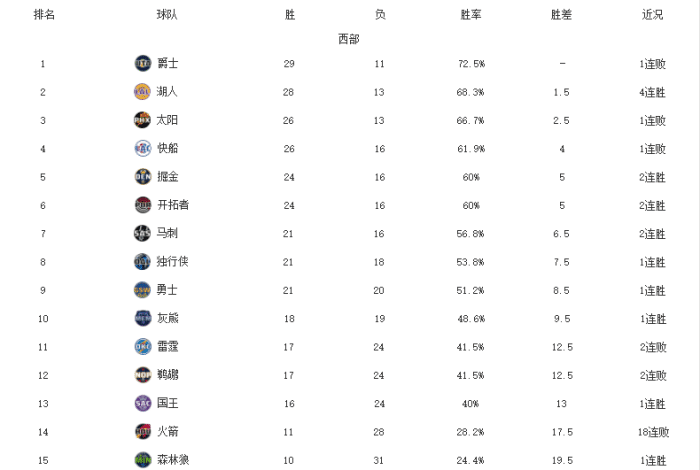NBA东西部最新排名!爵士太阳遭爆冷,湖人反超太阳,老鹰7连胜