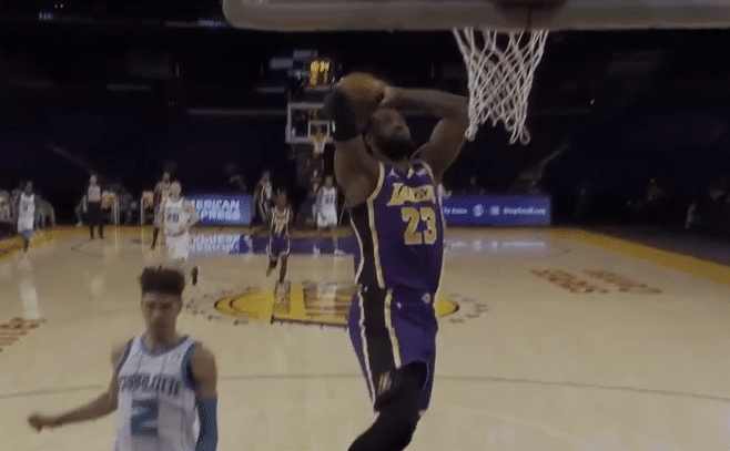 单节轰13分!詹姆斯迎里程碑之战,反击暴扣+倒地后全力回防
