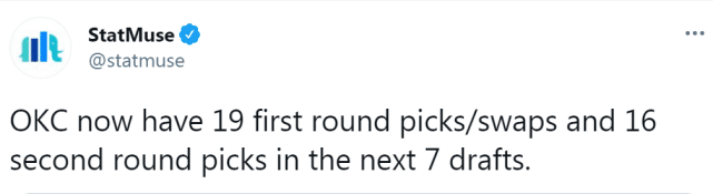 莱昂纳德因肩伤已经赛季报销,美媒表示,雷霆预计也不会留下莱昂纳德,他们的目标只是为了换次轮签,莱昂纳德是薪金配平的需求。未来,雷霆可以选择继续交易莱昂纳德。StatMuse指出,在未来7年的选秀大会上,雷霆将拥有19个首轮签/首轮互换权,以及16个次轮签。他们的未来一片光明。