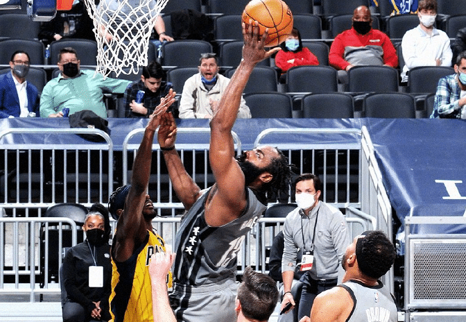 哈登来到篮网之后首度单核砍下40+的得分的数据