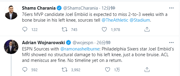 万幸!恩比德真实伤情出炉,十字韧带和半月板都没事,篮网或抢走东部第一