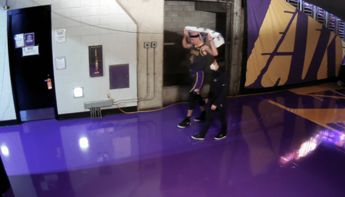 湖人又伤一人!卡鲁索脑袋砸地返回更衣室,谁留意到詹皇反应?示意先别打了