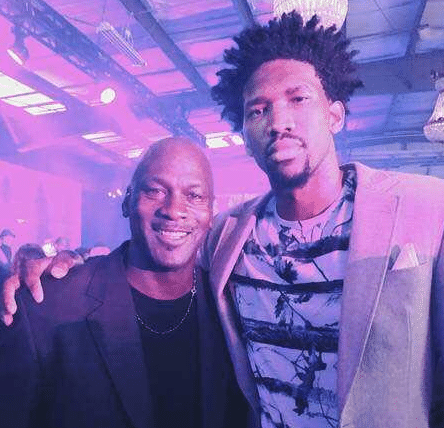 说完了远古上帝,再看一下当今联盟的大帝恩比德。随着时间的前行,恩比德的统治力也愈发愈变得耀眼。本赛季,在他的带领下,76人已经拿到了东部第一的战绩。而恩比德场均30.2分11.6篮板3.3助攻的数据,已让他成为了MVP的热门人选。当然,恩比德也是乔丹的一枚小迷弟。只是两人相差的年龄实在太大。脸上的胶原蛋白就是最明显的区别。两人合照,又赶上乔丹喝了一点酒,眼神略带微醺,同框的画面才显得恩比德更加的霸气十足的。但如若乔丹再年轻10岁,那么恩比德在他面前也只有当弟弟的份了!
