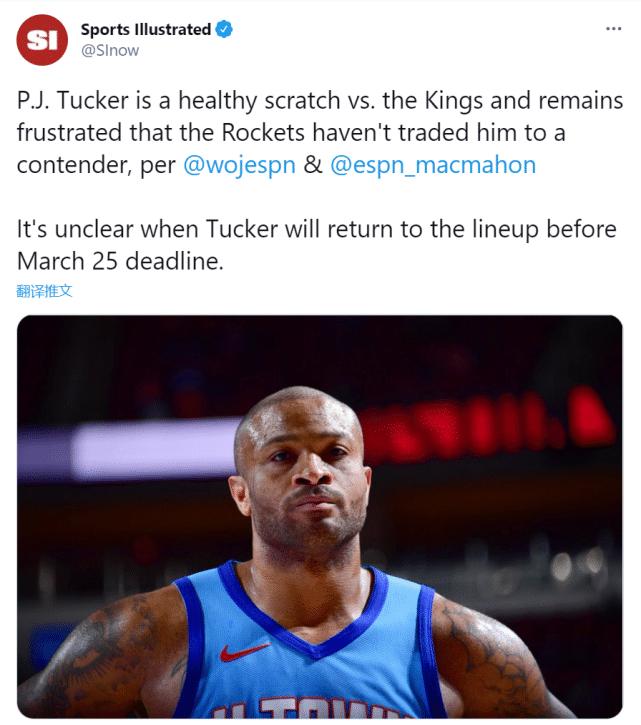 Tim MacMahon报道,消息人士透露,塔克对还未被交易至强队感到失望,他不确定自己交易截止日前还会不会为火箭出战比赛。本赛季至今,塔克出战32场比赛,场均4.4分4.6篮板。能看出他的状态已经不复当年之勇了,尤其是进攻端相当低迷,擅长的底角三分命中率骤降,防守端也容易失位!