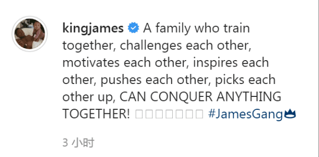 来源:24直播网03-12 19:1224直播网讯 北京时间3月12日,湖人球星勒布朗-詹姆斯更新社媒,晒出了全家人一起在健身房训练的画面,并配文写道:“一个能够一起训练,挑战和激励彼此,互相启发、推动和帮助的家庭,可以共同征服一切!!#詹姆斯帮”。