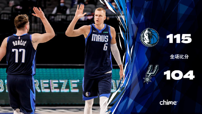 独行侠115-104力克马刺迎4连胜 东契奇22+12+12 德罗赞30+11