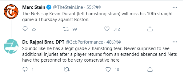 这应该就是杜兰特的真实伤情,只是当时篮网没有公布伤势的严重程度,只是说腿筋拉伤而已。