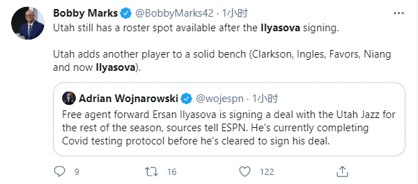 来源:24直播网03-10 14:5824直播网3月10日讯 据名记shams报道联盟第一的爵士将会签约艾森-伊利亚索瓦,双方将签约到赛季结束,目前伊利亚索瓦正在接受新冠检测,然后双方便可以正式签约;按照这节奏,爵士真要变成联盟第一三分大队,又补强外线太疯狂了。