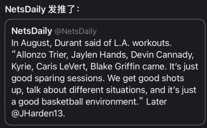 最佳经理人?哈登和格里芬去年8月参加杜兰特训练营,最终都加盟篮网!