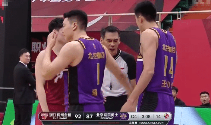 太危险!北控外援脚踢对手头部,张帆肘击动作威胁对手领技犯