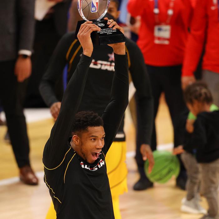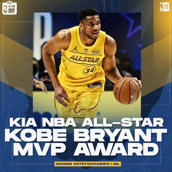 直到联盟总裁正式宣布字母哥是今年全明星科比-布莱恩特MVP得主,他终于放心了,抱起科比MVP奖杯后仰天高呼,满脸笑容早已笑开花,库里等人都为他鼓掌庆祝;谈到夺得全明星MVP,字母哥表示:在我家有一个以科比命名的奖项是一种很棒的感觉,我知道他会很高兴的。