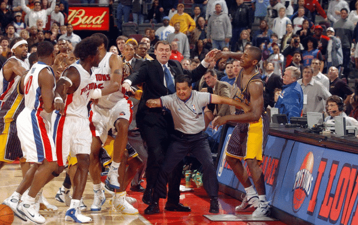 来源:24直播网03-07 11:5724直播网3月7日讯 2004年11月19日,活塞主场和步行者的比赛,这或许是NBA联盟最不愿意回忆的比赛,这场比赛中发生的暴力冲突让整个联盟蒙羞,最终联盟也开出了一张超级罚单,不过相比阿泰斯特等人,在比赛中被误打的威廉姆就要委屈的多,接下来,我们先来看看当时发生了什么。