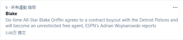 31岁格里芬状态明显下滑,但照样有很多强队想要引援他,目前篮网、快船、湖人、热火、勇士和凯尔特人都有兴趣引援格里芬,其中篮网是格里芬潜在下家的领跑者。